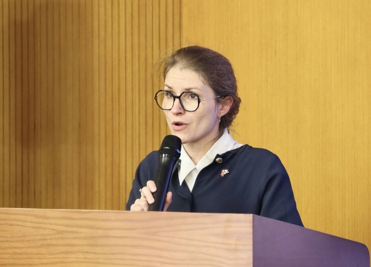 Bà Eva Dousset, Tham tán Kinh tế, Phó Trưởng Cơ quan Kinh tế Đại sứ quán Pháp tại Việt Nam, phát biểu tại Toạ đàm. Ảnh: Phương Linh.
